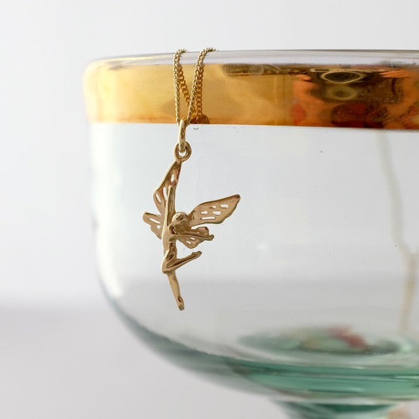 The tiniest version of our pretty Good Morning, Good Night Fairy made in solid gold and dancing on the finest curb chain.